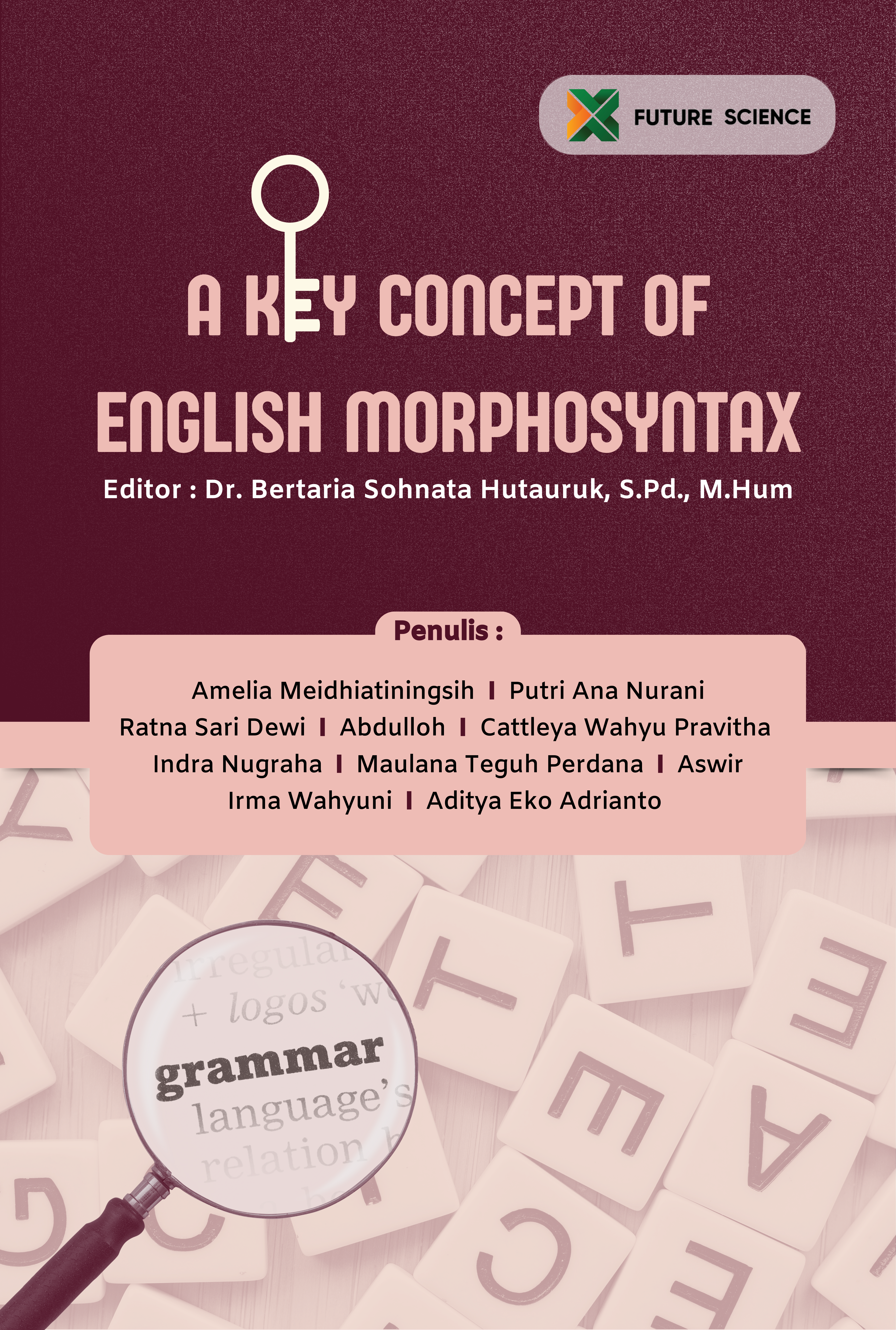 Meidhiatiningsih, Amelia and Ana Nurani, Putri and Sari Dewi, Ratna and Abdulloh, Abdulloh and Wahyu Pravitha, Cattleya and Nugraha, Indra and Teguh Perdana, Maulana and Aswir, Aswir and Wahyuni, Irma and Eko Adrianto, Aditya (2025) A KEY CONCEPT OF ENGLISH MORPHOSYNTAX. Future Science, Malang, Indonesia. ISBN 978-634-7037-92-3