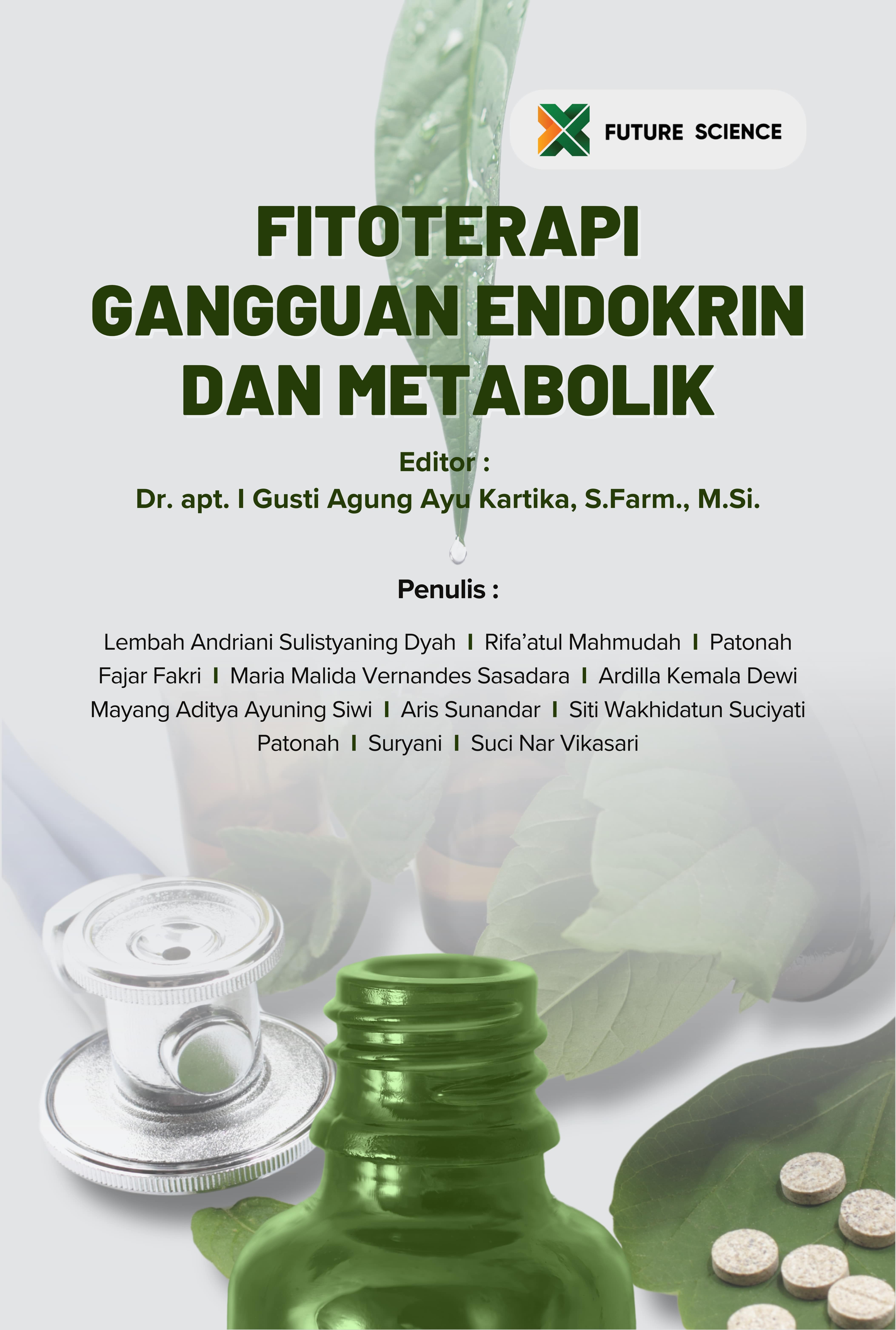Lembah Andriani Sulistyaning, Dyah and Rifa’atul, Mahmudah and Patonah, Patonah and Fajar, Fakri and Maria Malida Vernandes, Sasadara and Ardilla Kemala, Dewi and Mayang Aditya Ayuning, Siwi and Aris, Sunandar and Siti Wakhidatun, Suciyati and Patonah, Patonah and Suryani, Suryani and Suci Nar, Vikasari (2024) FITOTERAPI GANGGUAN ENDOKRIN DAN METABOLIK. Future Science, Malang. ISBN 978-634-7037-52-7