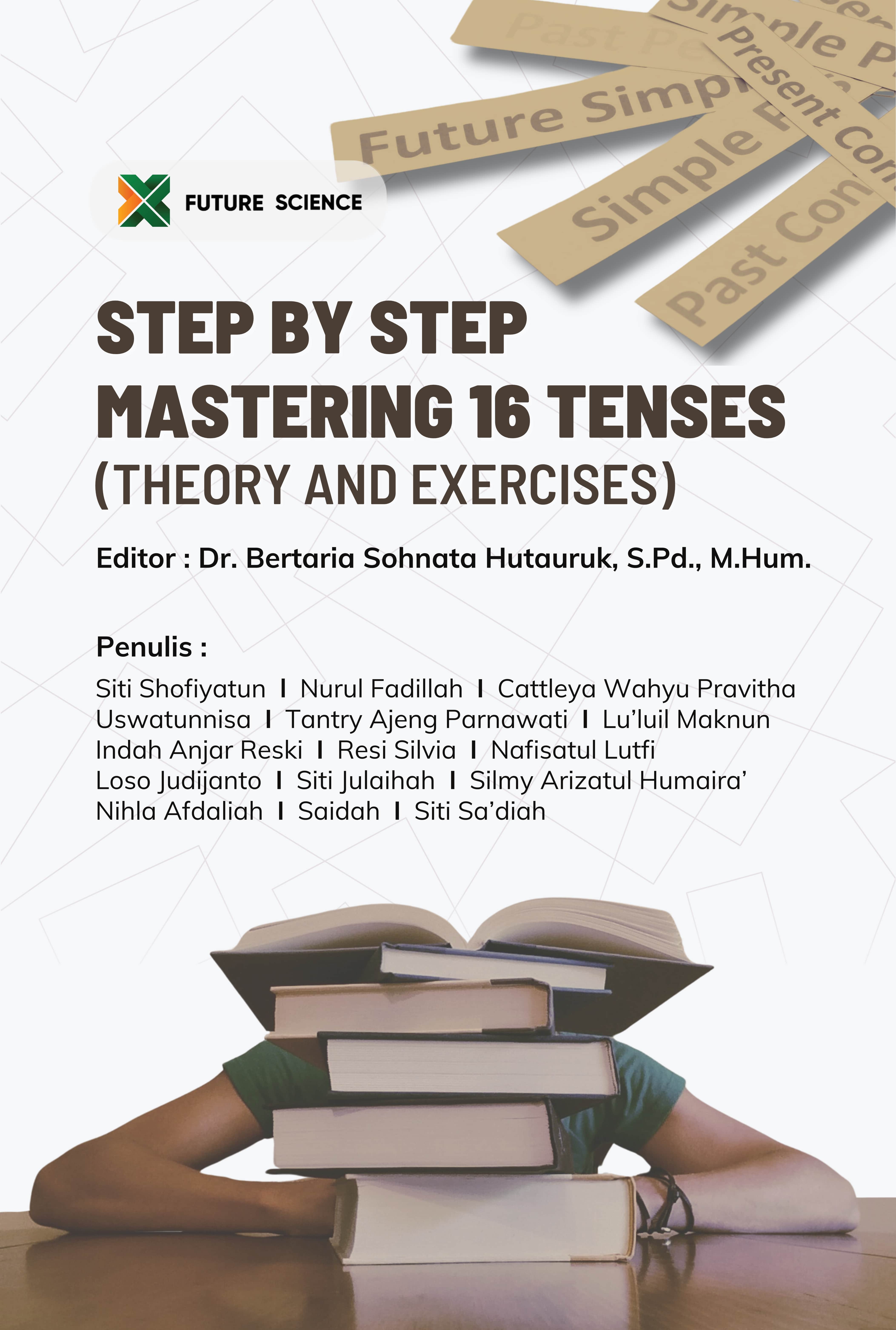 Siti, Shofiyatun and Nurul, Fadillah and Cattleya Wahyu, Pravitha and Uswatunnisa, Uswatunnisa and Tantry Ajeng, Parnawati and Lu’luil, Maknun and Indah Anjar, Reski and Resi, Silvia and Nafisatul, Lutfi and Loso, Judijanto and Siti, Julaihah and Silmy Arizatul, Humaira’ and Nihla, Afdaliah and Saidah, Saidah and Siti, Sa’diah (2024) STEP BY STEP MASTERING 16 TENSES (THEORY AND EXERCISES). Future Science, Malang. ISBN 978-634-7037-54-1