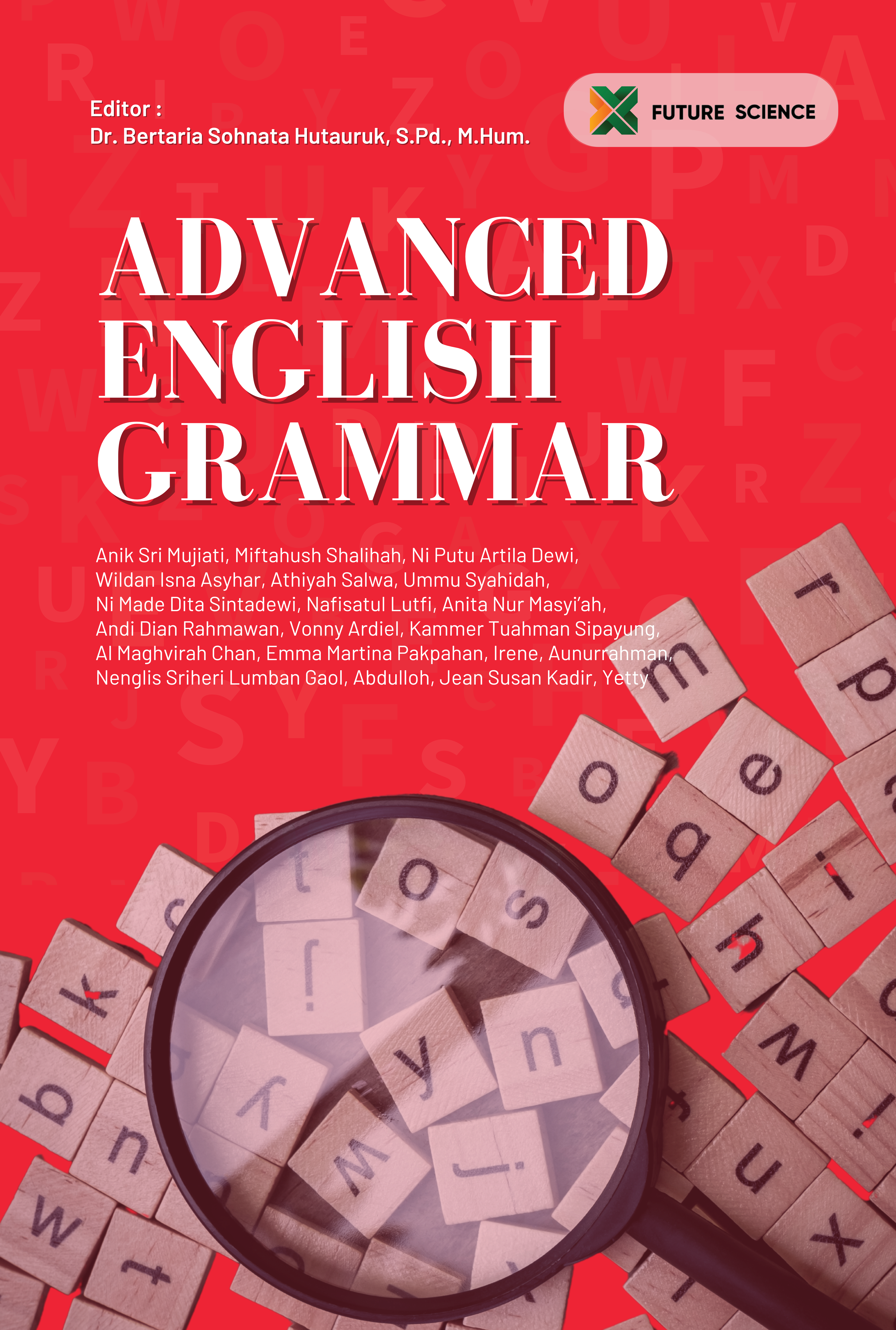 Anik Sri, Mujiati and Miftahush, Shalihah and Ni Putu Artila, Dewi and Wildan Isna, Asyhar and Athiyah, Salwa and Ummu, Syahidah and Ni Made Dita, Sintadewi and Nafisatul, Lutfi and Anita Nur, Masyi’ah and Andi Dian, Rahmawan and Vonny, Ardiel and Kammer Tuahman, Sipayung and Al Maghvirah, Chan and Emma Martina, Pakpahan and Irene, Irene and Aunurrahman, Aunurrahman and Nenglis Sriheri Lumban, Gaol and Abdulloh, Abdulloh and Jean Susan, Kadir and Yetty, Yetty (2024) ADVANCED ENGLISH GRAMMAR. Future Science, Malang. ISBN 978-623-8665-46-4